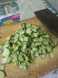 - 将火腿肠和黄瓜切成小块。